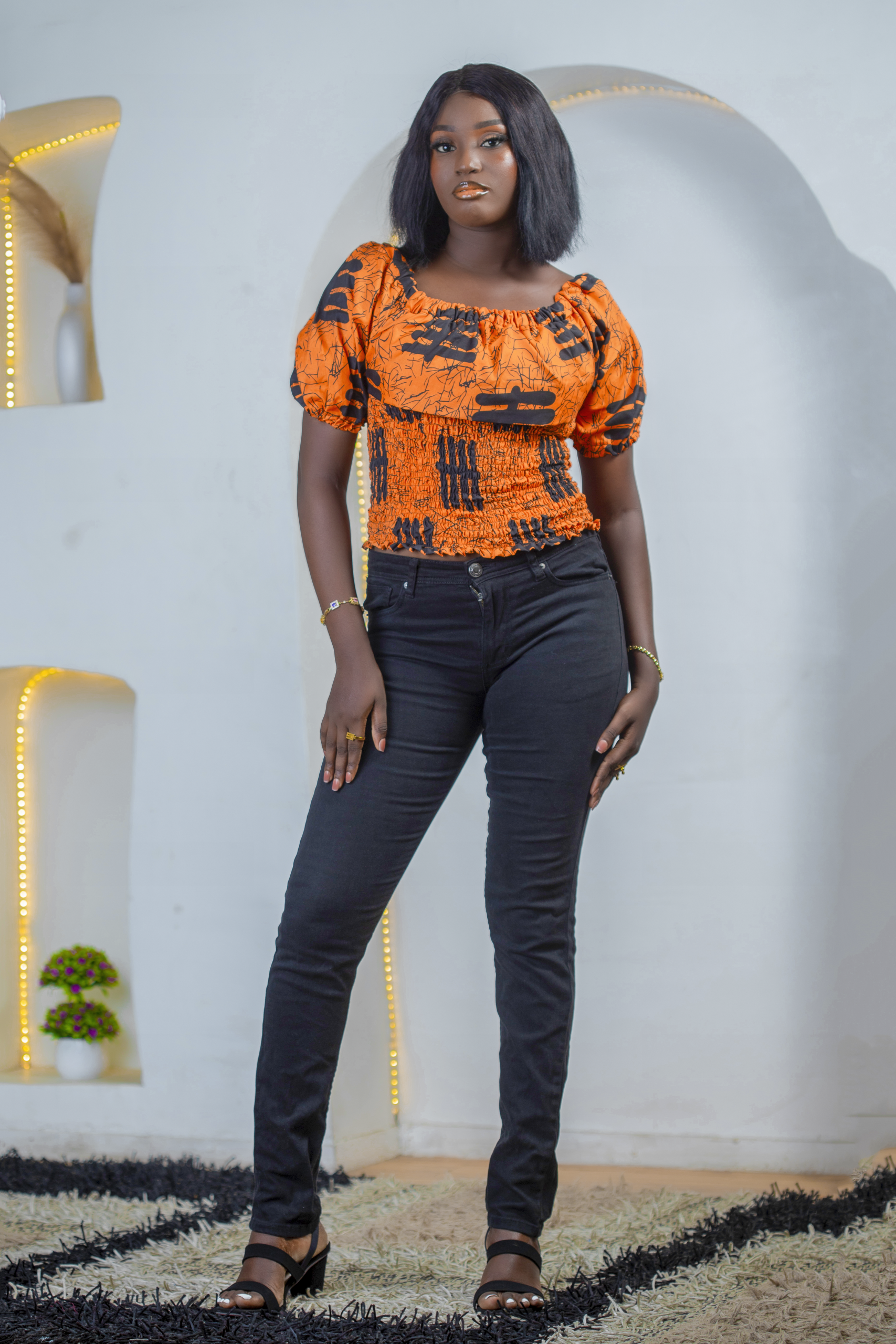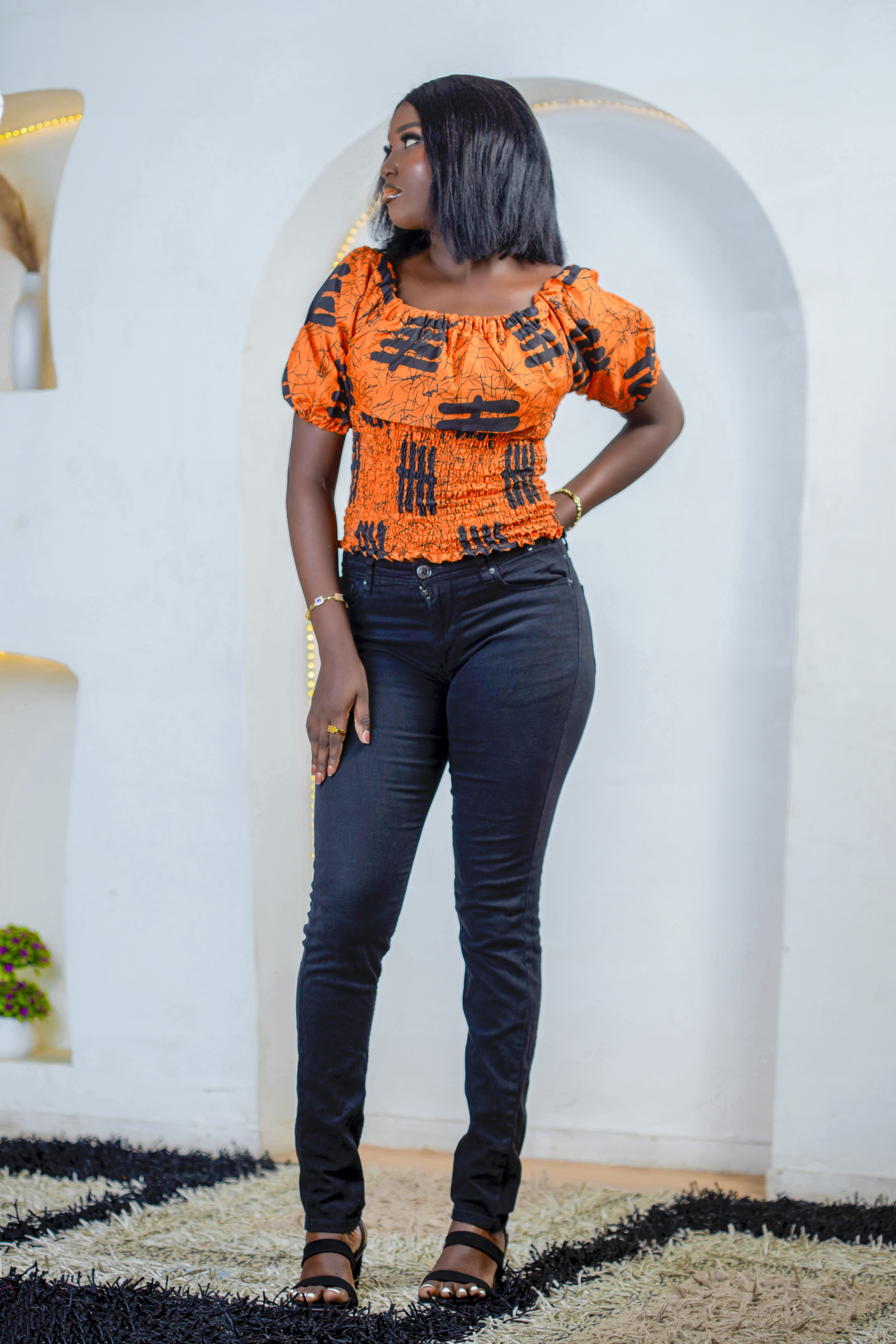 The Holly IV Blouse is made of a vibrant print cotton, and this can be matched with a solid color pants or skirt.